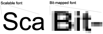- bitmapped - são guardadas como uma matriz de pixeis e ao serem ampliadas perdem qualidade pois possuem uma dimensão e tamanho já concebidas e ao serem ampliadas ficam desfocadas. Exemplo: Courier;